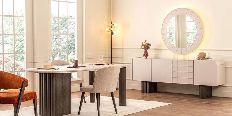 Her takım aynı değildir ama temeli ortaktır: masa, sandalye, konsol ve ayna. Bunlar bir araya geldiğinde yemek odası takımı olur. Ancak asıl fark, bu parçaların birbiriyle ne kadar uyumlu olduğunda gizlidir. Geniş aileler için sekiz kişilik masalar öne çıkar. Küçük alanlarda ise uzatılabilir modeller işlevselliği artırır. Kumaş kaplamalı sandalyeler uzun oturumlarda konfor sağlar ve konsol bölmeleri düzeni korur. Storish bu parçaları yemek odası modellerinde bir araya getirirken sadece estetiğe değil kullanım kolaylığına da odaklanır.